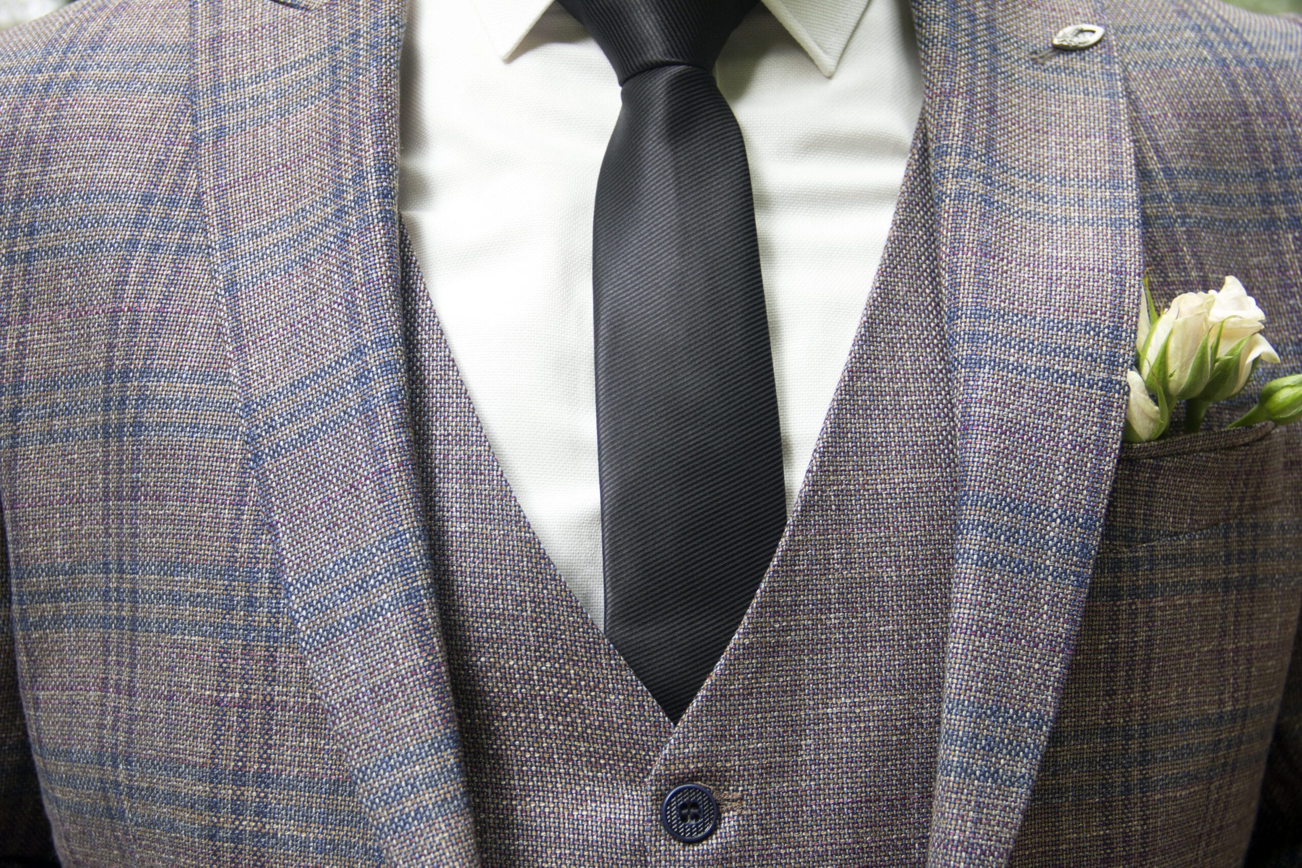 Una de las decisiones menos estratégicas es probar el traje de forma incompleta. El conjunto debe evaluarse tal como se llevará el día del evento, incluyendo camisa, calzado y accesorios.